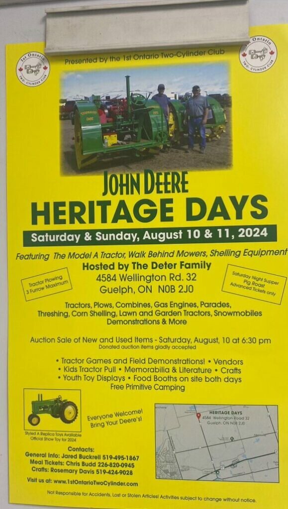 A heartfelt appreciation to the Deter Family from Puslinch for Hosting the ‘John Deere Heritage Days’ at 4584 Wellington Road 32 of this past weekend.